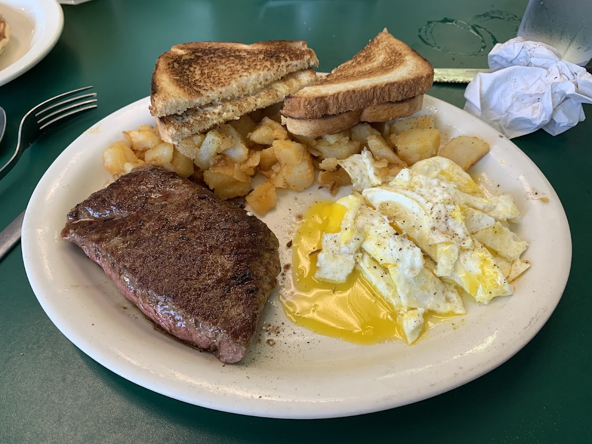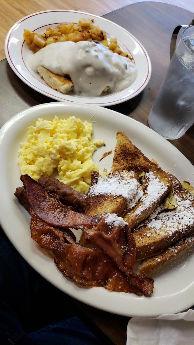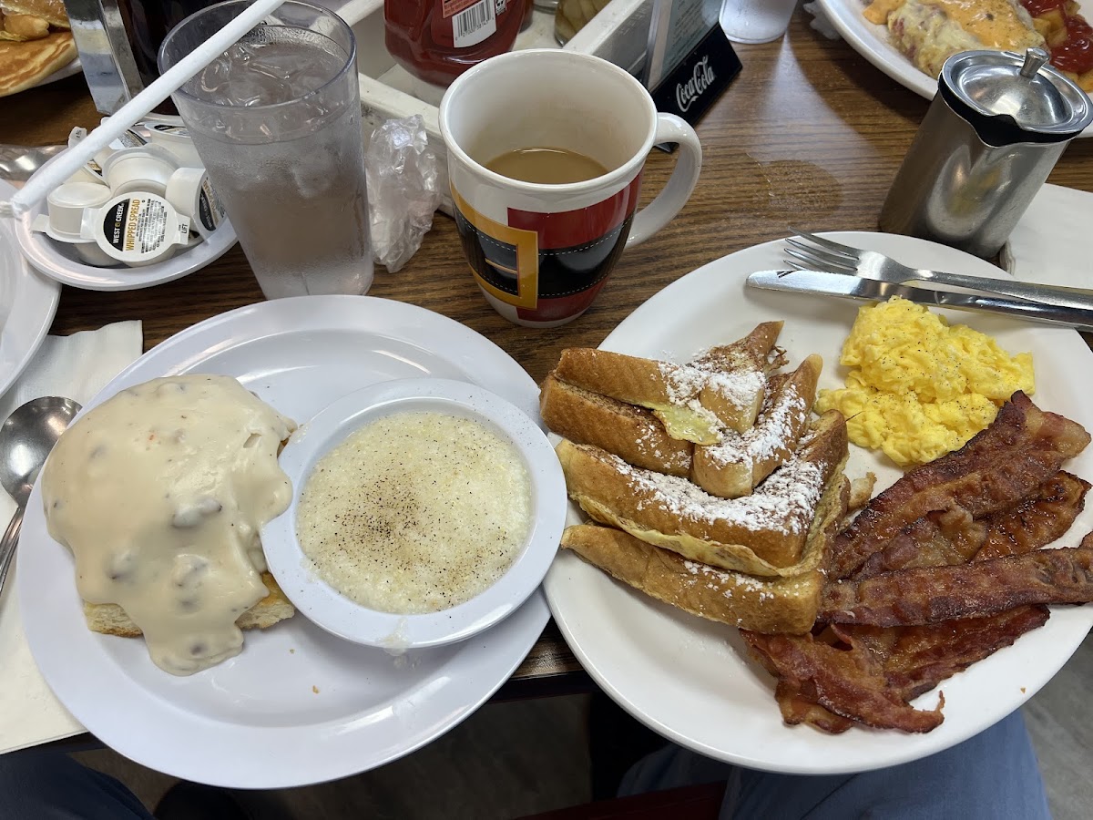 For those with a sweet tooth, the French Toast Combo is an excellent choice. Thick slices of French toast, golden-brown and dusted with powdered sugar, are served with eggs and your choice of bacon or sausage. It's a perfect balance of sweetness and savory, sure to keep you full all morning long.